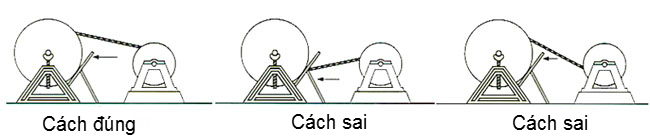 Chú ý: Nếu cuộn từ trên xuống dưới hoặc từ dưới lên trên có thể gây uốn cong ngược sợi cáp. Các dây cáp cần được tháo ra và cuộn vào theo cùng một hướng trên tang trống cáp.