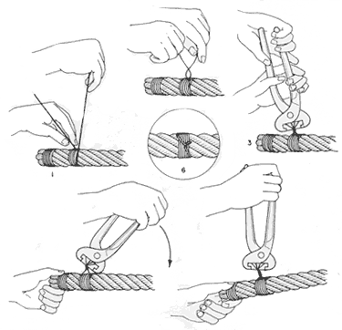 Cột chặt đầu sợi cáp thép bằng các sợi cáp nhỏ.